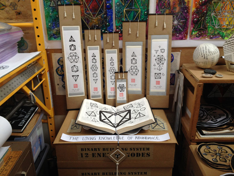 My paintings are an expression of a primordial intelligence that permeates all space/time. The geometry is a depiction of the fabric of Space self-arranging, self-organizing and self-connecting.