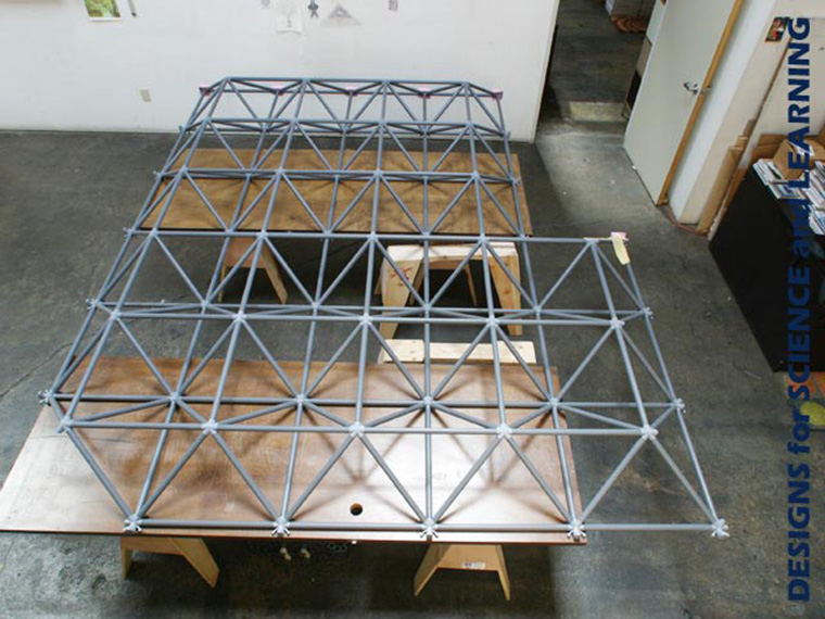 The connection nodes are made with the DIMENSION 3D Printer. The custom nodes are ABS plastic and all the pipes are ABS plastic, this made it easy to glue the structure together.