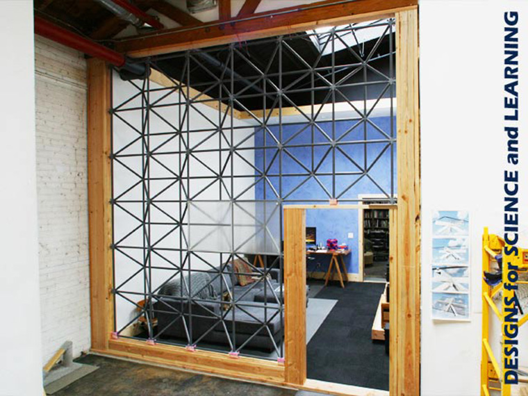 This is an interior spaceframe partition wall. It's made from typical ABS tubing and connected together with ABS plastic nodes. The nodes are all custom designed and made with the Dimension 3D Printer.