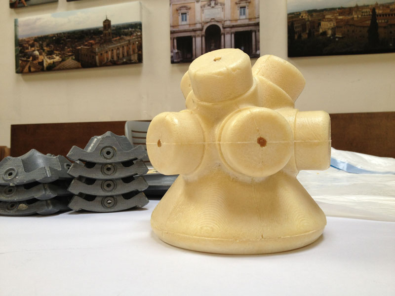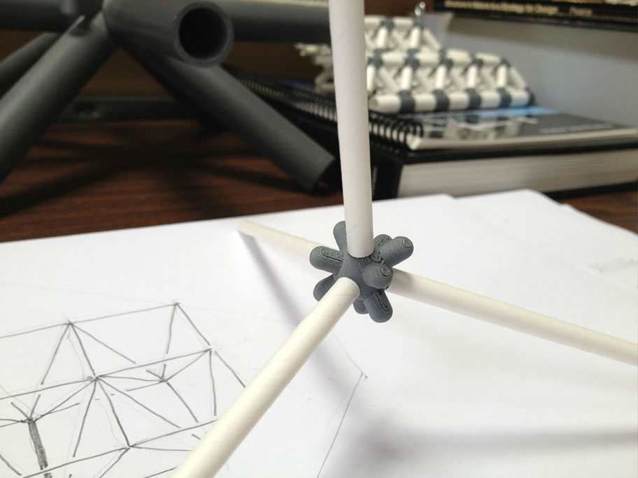 The paper straw version of the ENERGY NODE made with the Dimension 3D Printer, an ABS plastic fused deposition modeler.