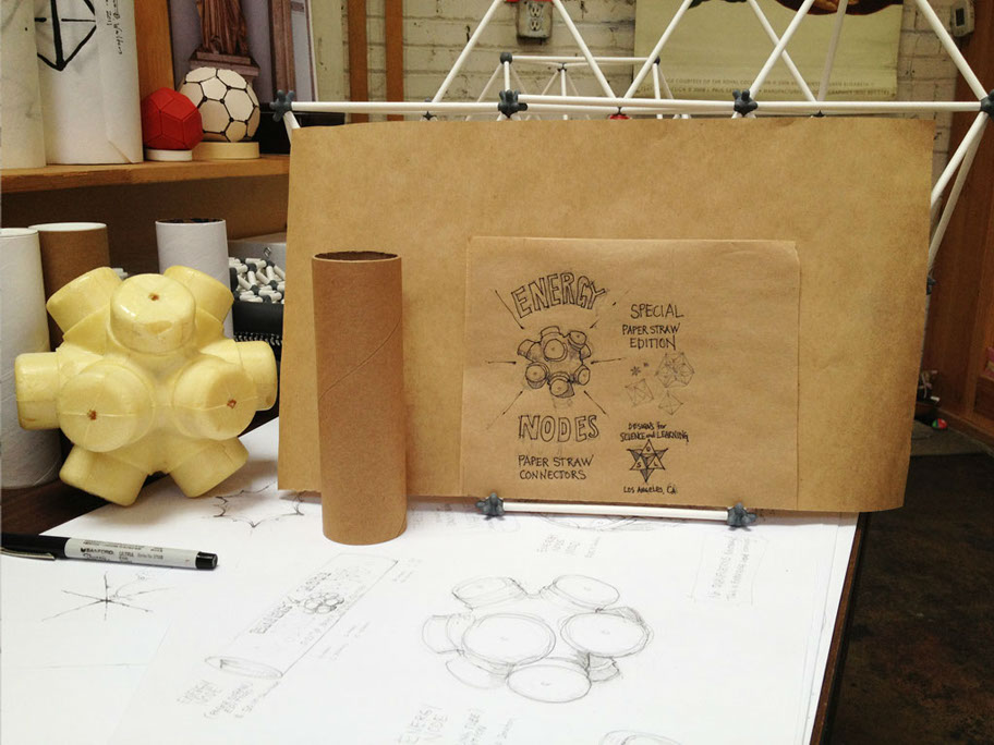 The paper straw scale model with the 3d printed nodes allows me to stage the sub-assemblies for construction... even rehearse if necessary. I plan on documenting this process with stop motion animation and compare it to the actual construction process. So this scale model will be getting a lot of use during the construction of The ENERGY NODE Project..