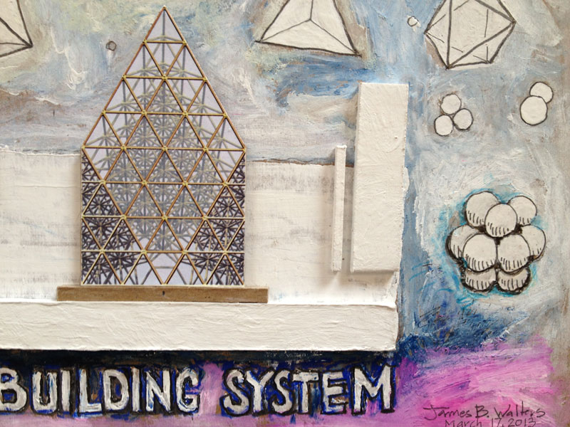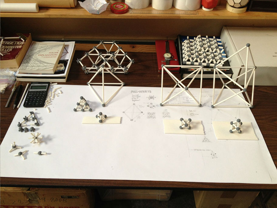 The result is the ENERGY NODE, a light weight, rigid polyurethane foam casting. The configuration of the node is based on the 60 degree angular relationships best described by Buckminster Fuller's Isotropic Vector Matrix.