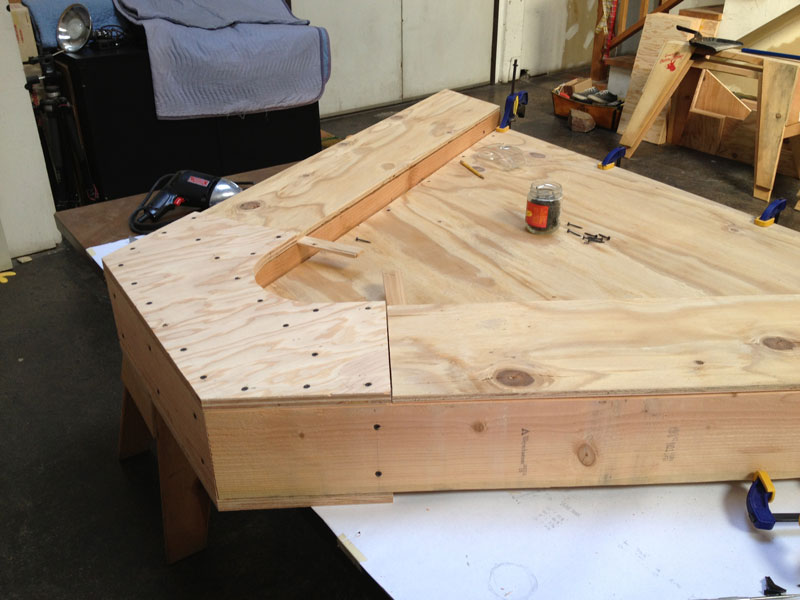 Ready to mix and pour... you have about one minute... that's why the clamps are used to secure the top triangular mold face.