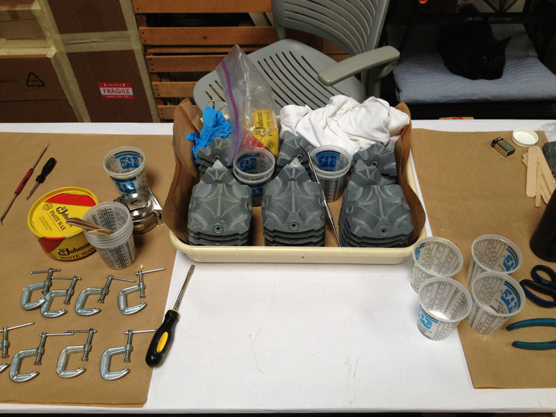 Before I even finished casting all 150 polyurethane nodes I started gluing a few test pieces. The parts fit good... and they glued together better than expected. (That doesn't mean it won't have it's problems.)